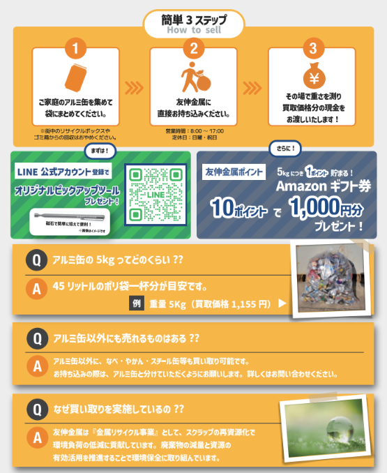 株式会社友伸金属では、企業様からの金属スクラップ買取に加え、地域の皆様個人からの資源買取も積極的に承っております。